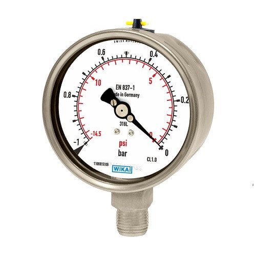 Bourdon tube pressure gauge, stainless steel, -1-0 bar, wika