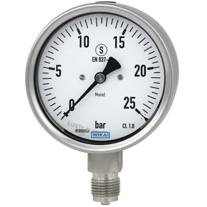 Bourdon tube pressure gauge, stainless steel, 0-25bar, wika