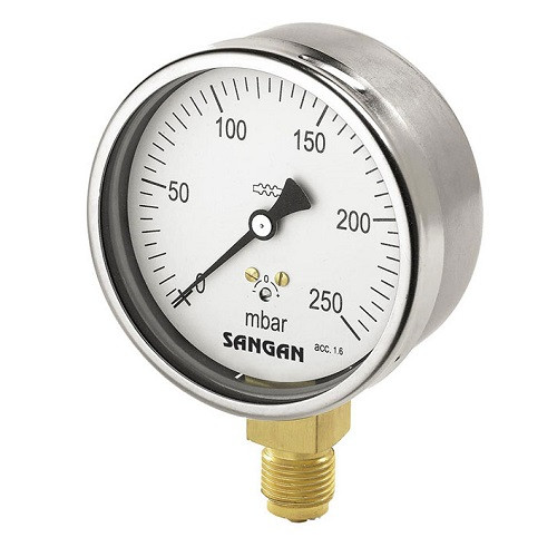 گیج فشار سنگان با رنج کاری 0 تا 250 میلی بار، در سایز صفحه4،5،6،10،16 سانت، دریافت گواهی کالیبراسیون آزمایشگاه