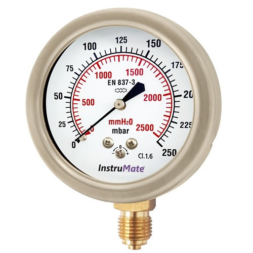 Bourdon tube pressure gauge, copper alloy, 0-250 mbar, instrumate