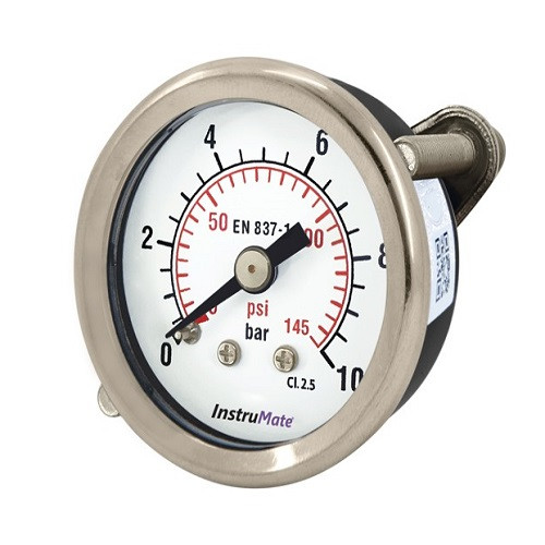 Bourdon tube pressure gauge, copper alloy, 0-10 bar, instrumate