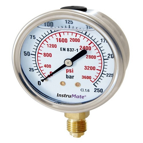 Liquid filled gauge, copper alloy, 0-250bar, instrumate