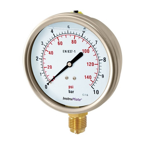 Liquid filled gauge, copper alloy, 0-10 bar, instrumate