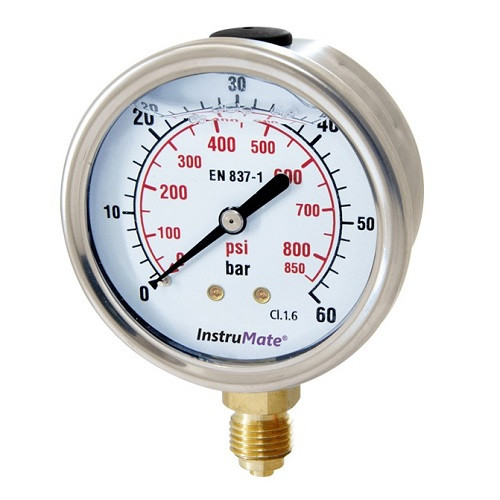 Liquid filled gauge, copper alloy, 0-60 bar, instrumate