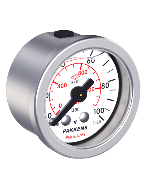 Liquid filled gauge, stainless steel, 0-100 bar, Pakkens